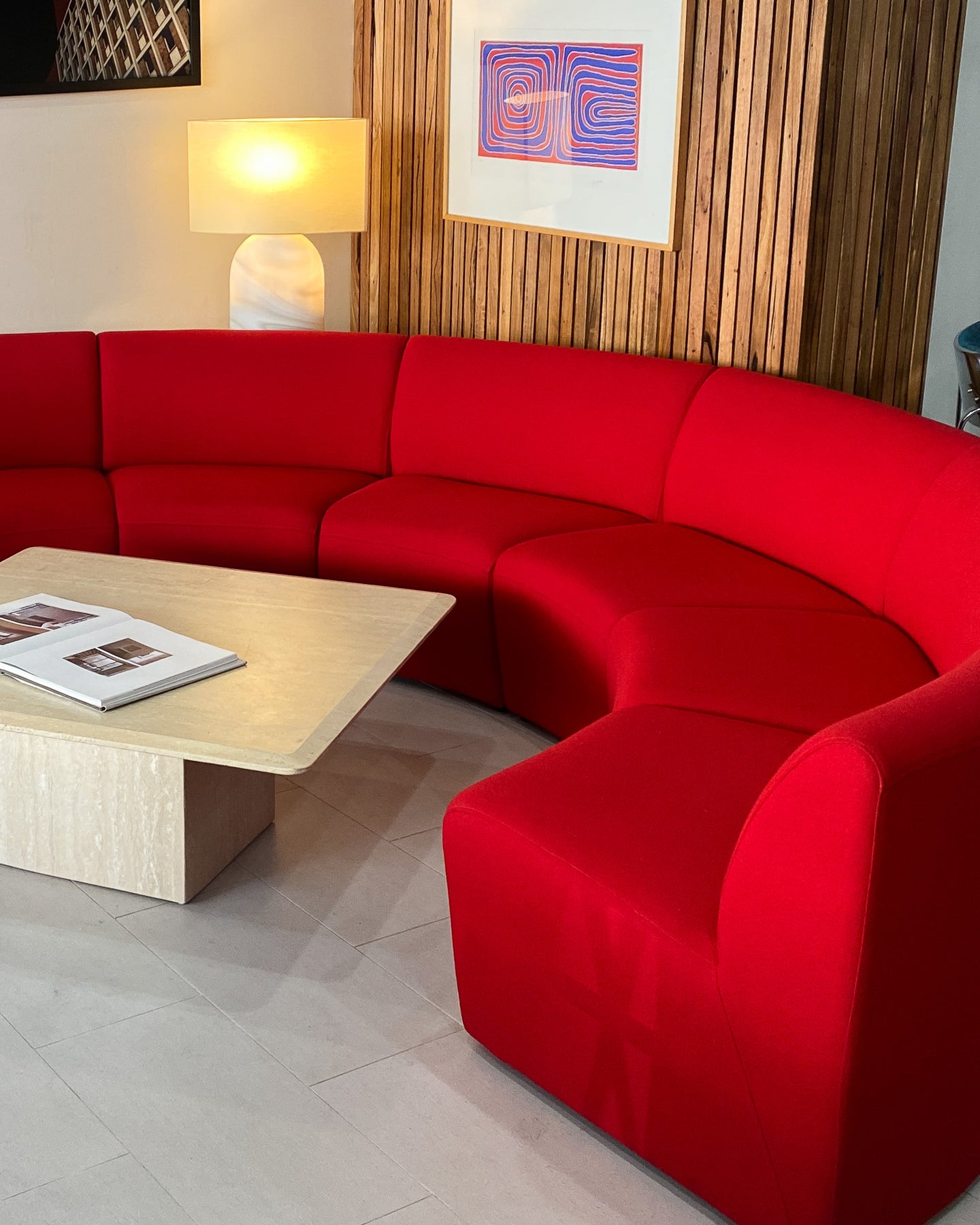 Custom eight piece modular loung by Workspace, formerly known as TH Brown & Sons, is one of Australia’s longest-running design and manufacturing companies, operating since 1911. Known for their commitment to quality, their Australian-made products are crafted to a high standard while embracing circular economy principles.